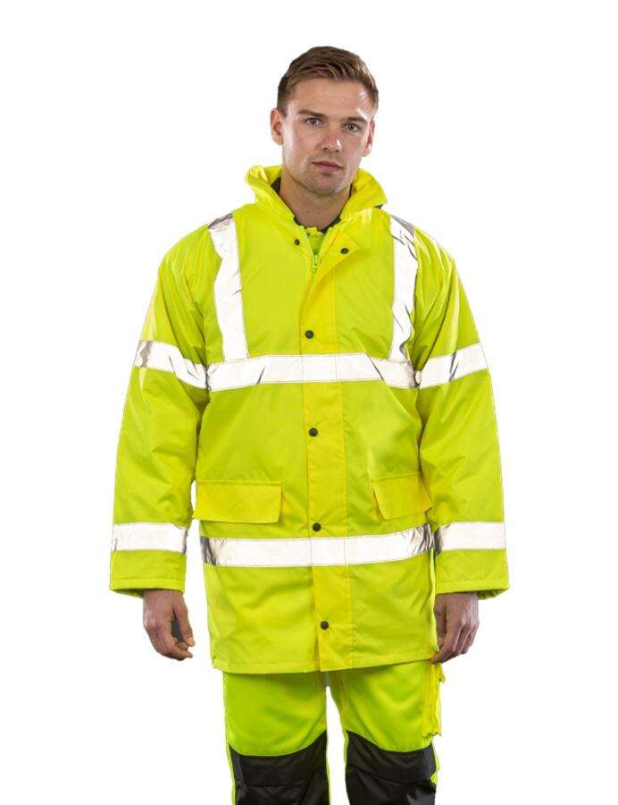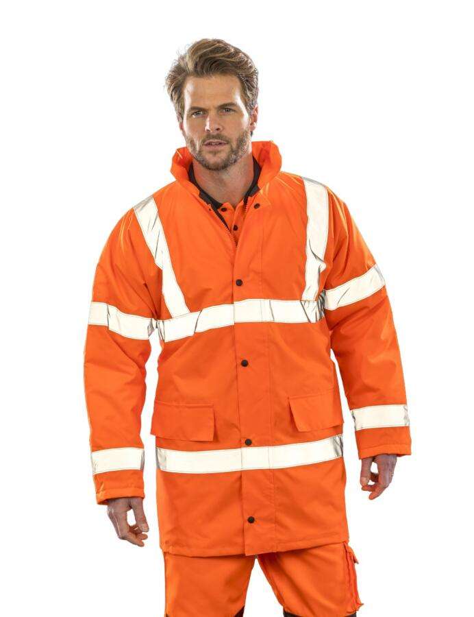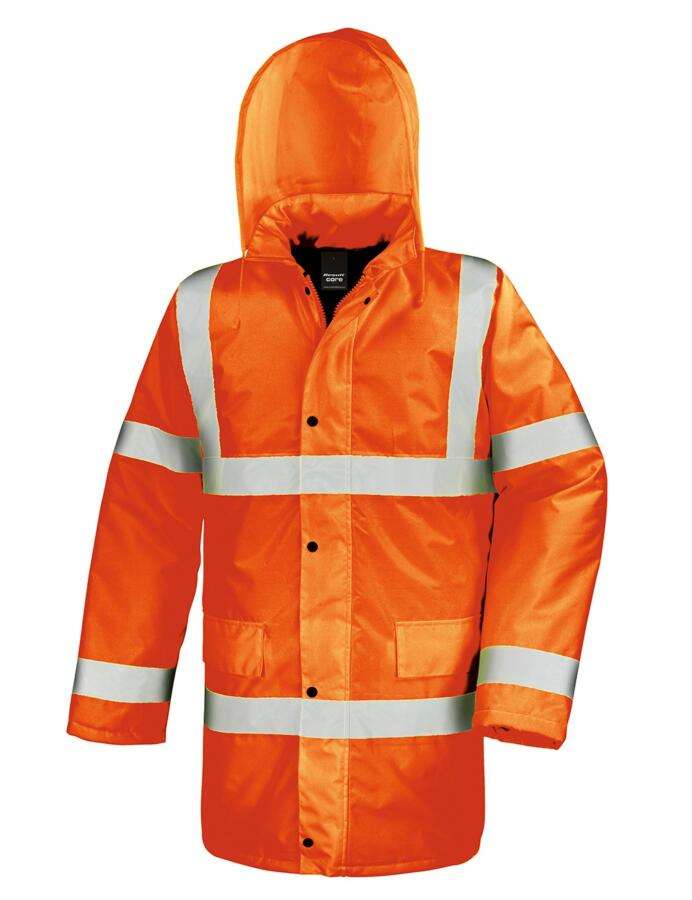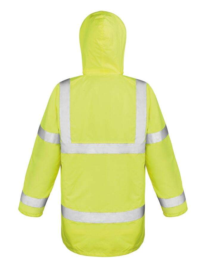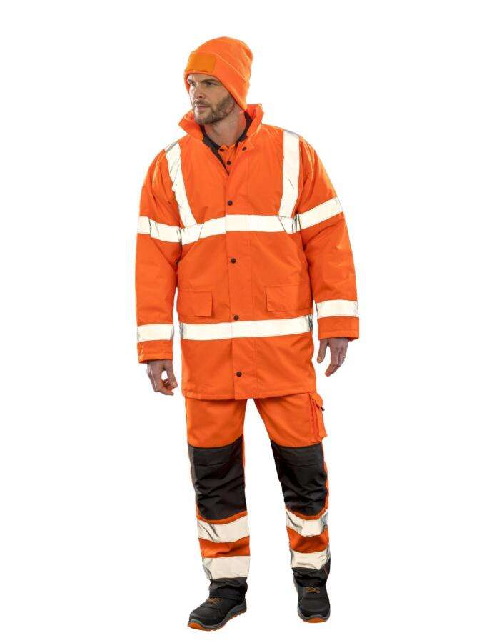 Oxford 300D – 100% Πολυέστερ – 190Τ καπιτονέ φόδρα – Ανθεκτικό στο νερό (1000mm) και αντιανεμική μεμβράνη PU – Εσωτερική επένδυση 160g/m² – 100% Πολυέστερ καπιτονέ, EN ISO 20471:2013+A1:2016 Class 3, IS-3279-TOM Issue 2:2019 Class 3 (μόνο στο orange)