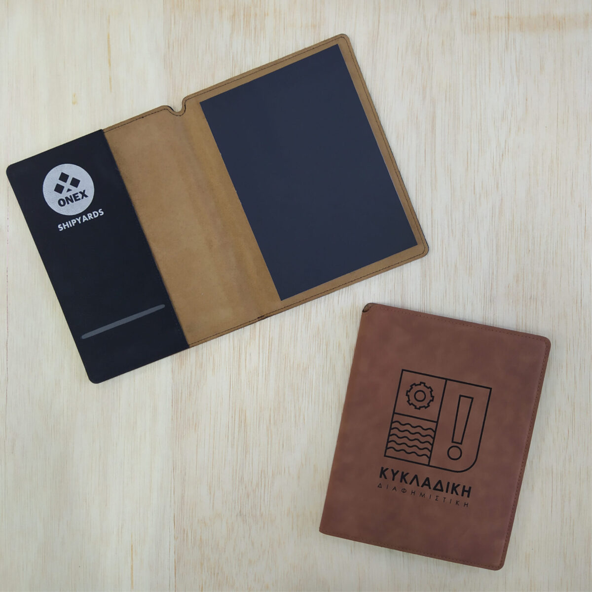Χαρτοφύλακας δερματίνης σε 2 διαστασεις και 2 χρώματα με μπλοκ σημειώσεων και θέση για κάρτες και στυλο