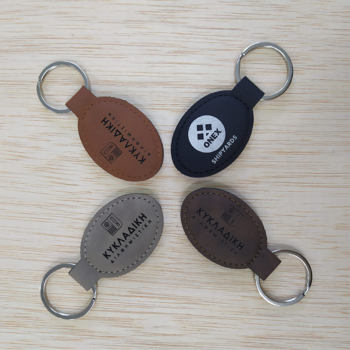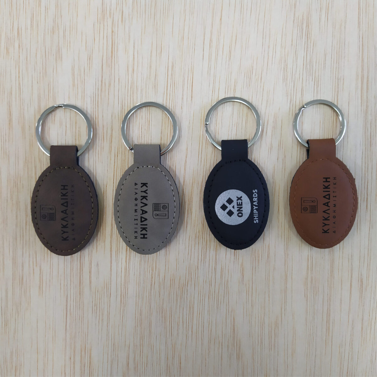 Μπρελόκ δερματίνης σε 4 χρώματα.Mε χάραξη λοτοτύπου.