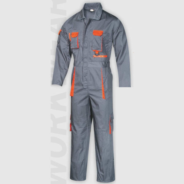 Ολόσωμη φόρμα εργασίας με πολλές εργονομικές τσέπες σε διάφορα σημεία και λειτουργικές τσέπες εργαλείων στις πλαϊνές όψεις .